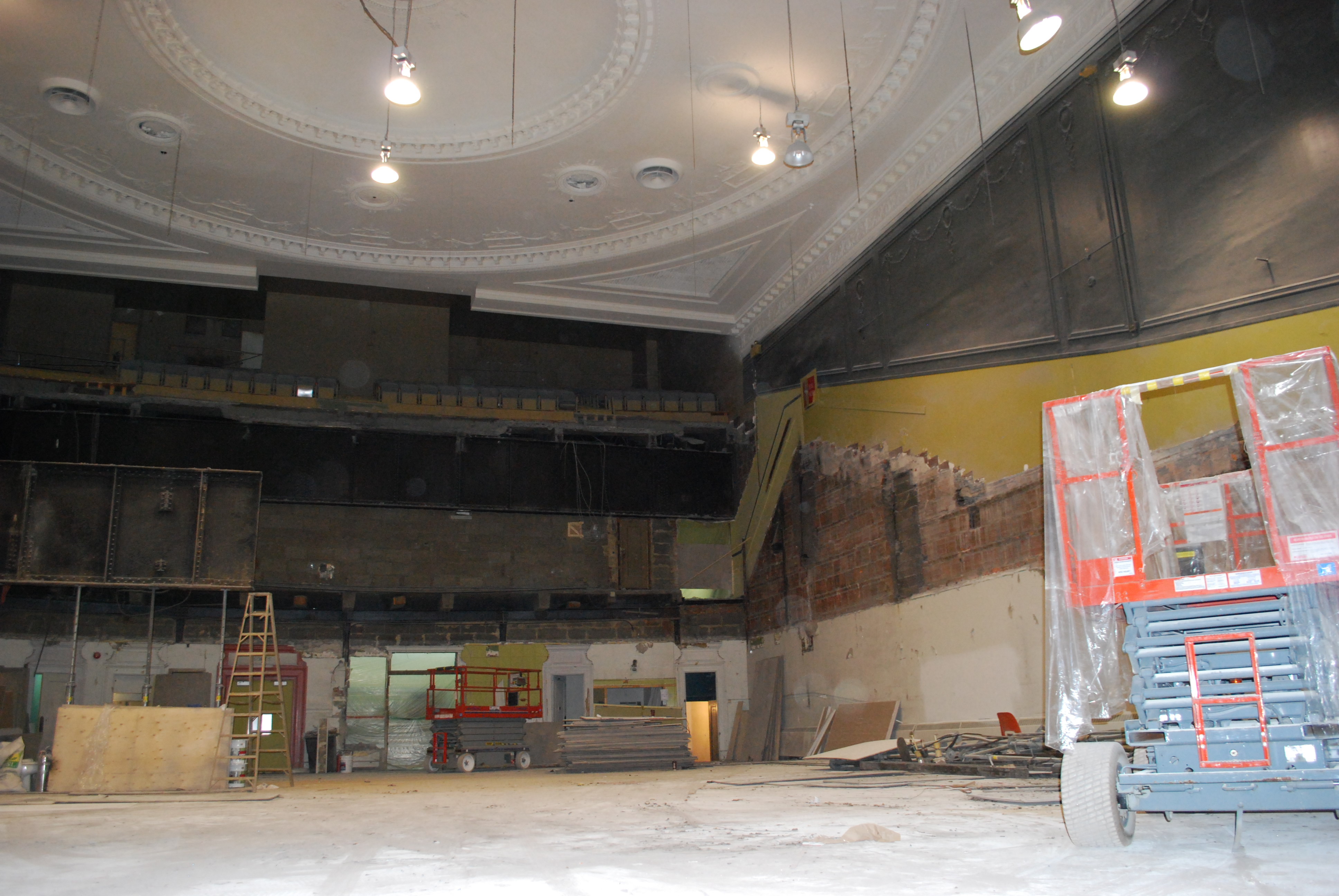 Everything remained intact! We can’t see everything since the climbing walls hide most of the theatre walls. The stands were essentially the only element that was destroyed.
